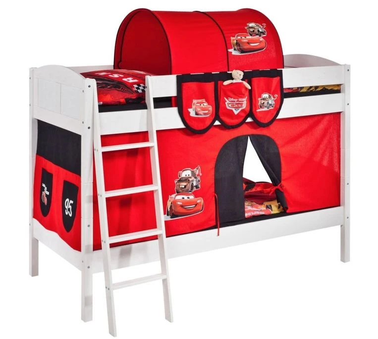 Disney Cars Lit Superposé Blanc Laqué Et Rideau Cars 90×200 Cm