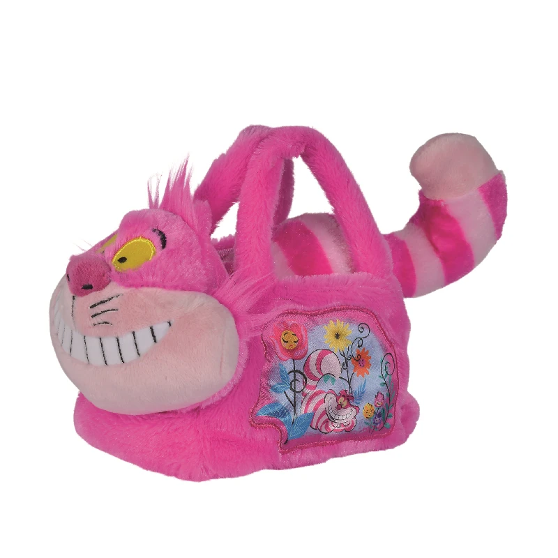 Peluche Le chat du Cheshire du film Alice au pays des merveilles, 20 cm dans son sac.
