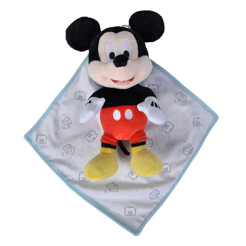 Peluche Mickey la souris dans sa couverture avec scratch de 25 cm.